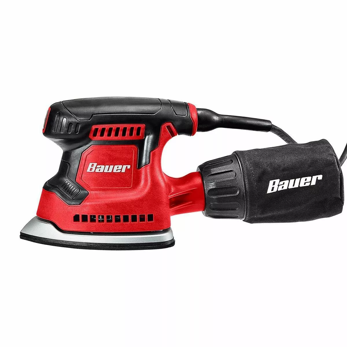 The BAUER™ 1.2 Amp Corner/Detail Sander with Sealed On/Off Switch has a powerful motor that delivers 10X more power* in tight spots and corners making it ideal for fast stock removal and finishing. Heavy Duty Guaranteed for up to 12,500 OPM .