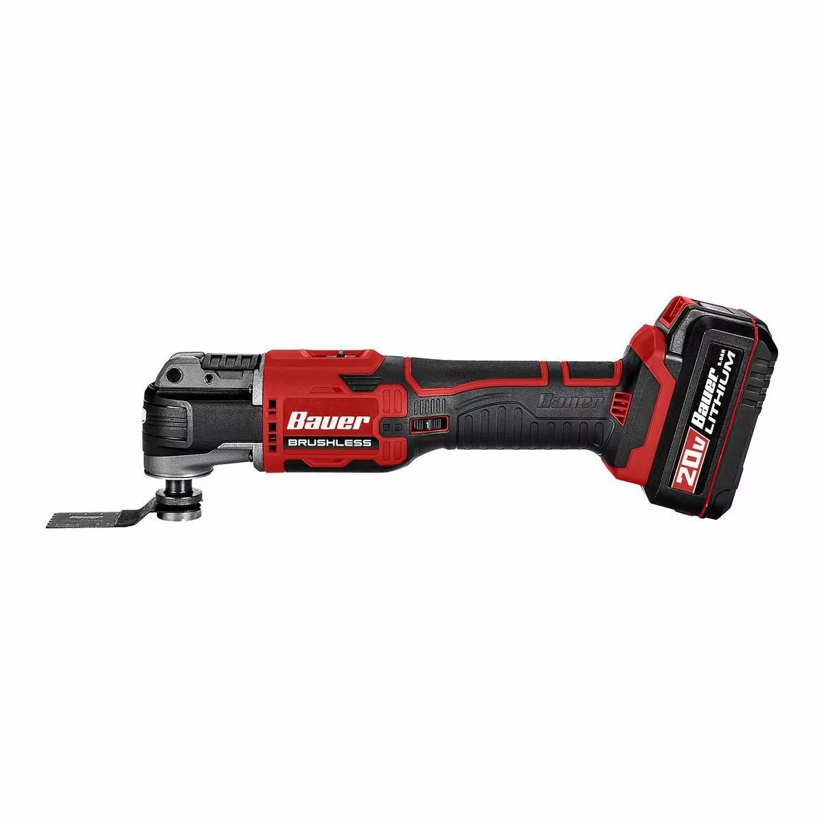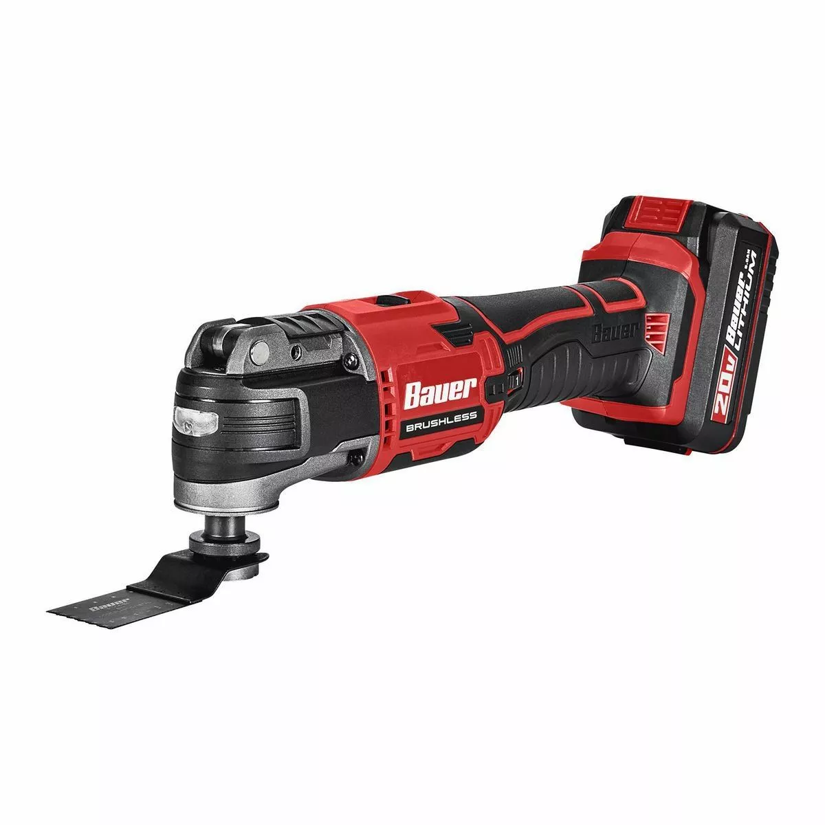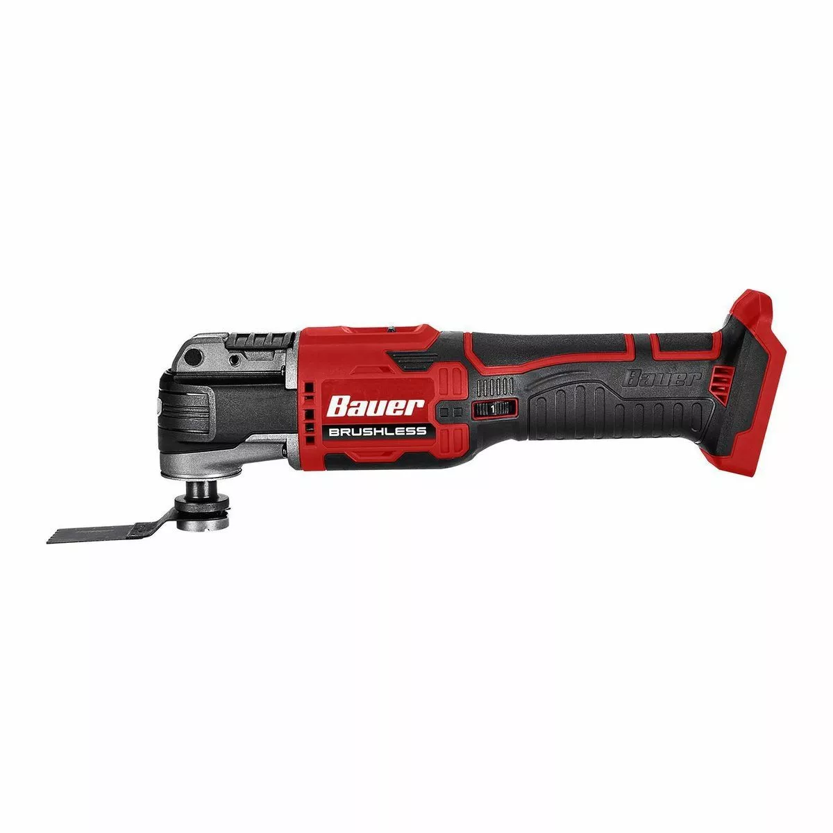 The BAUER™ 20V Brushless Cordless Oscillating Multi-Tool features a high-performance brushless motor and 2.9° oscillation angle range for quick and accurate cuts. Variable speed control matches oscillation speed to application. The universal tool head accepts most OMT accessories on the market.