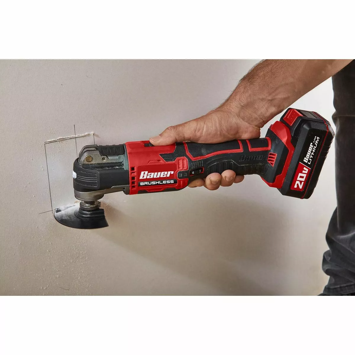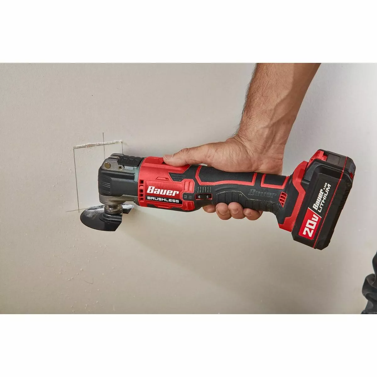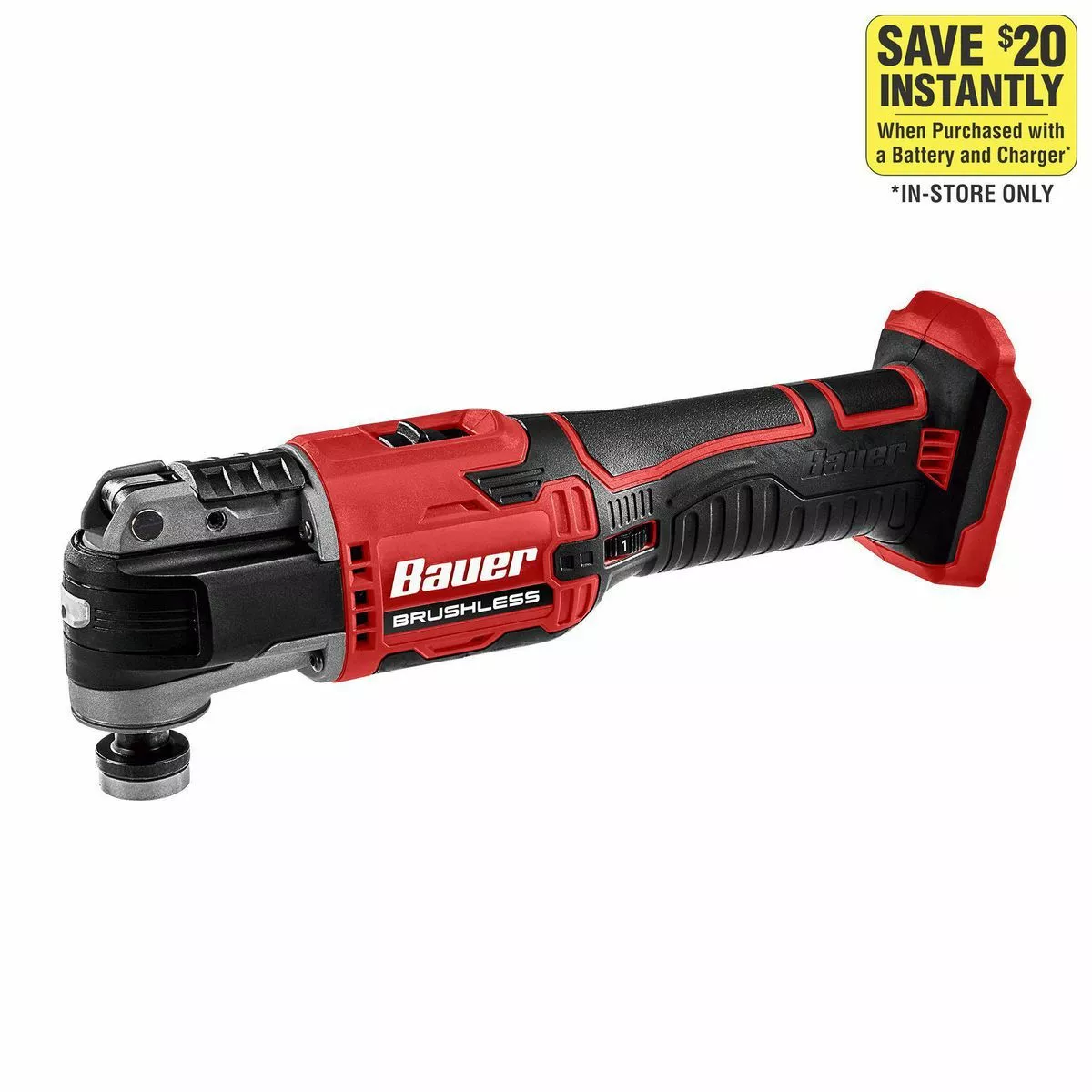 The BAUER™ 20V Brushless Cordless Oscillating Multi-Tool features a high-performance brushless motor and 2.9° oscillation angle range for quick and accurate cuts. Variable speed control matches oscillation speed to application. The universal tool head accepts most OMT accessories on the market.