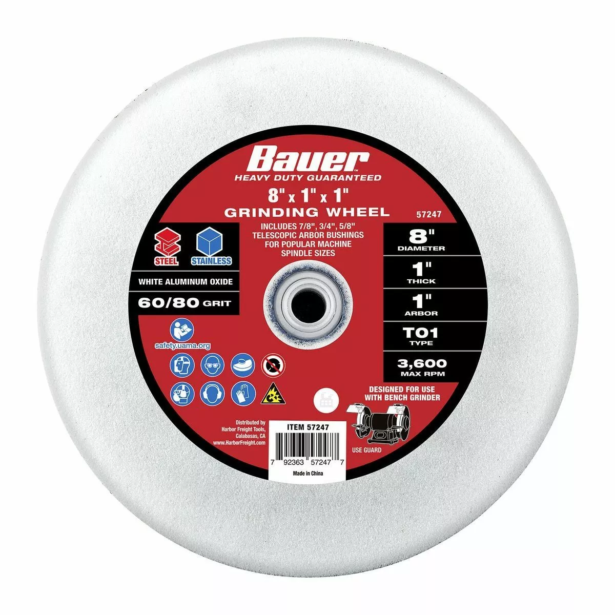 The BAUER™ bench grinding wheel uses high quality aluminum oxide abrasive for long lasting performance. Get the best results when grinding, smoothing, shaping metal and removing weld slag.