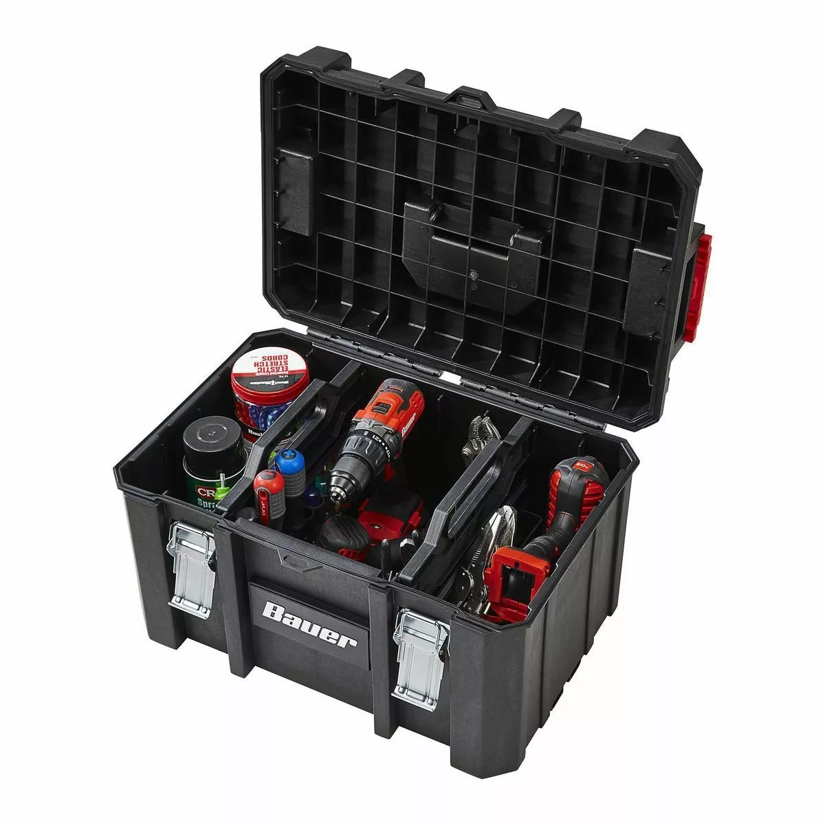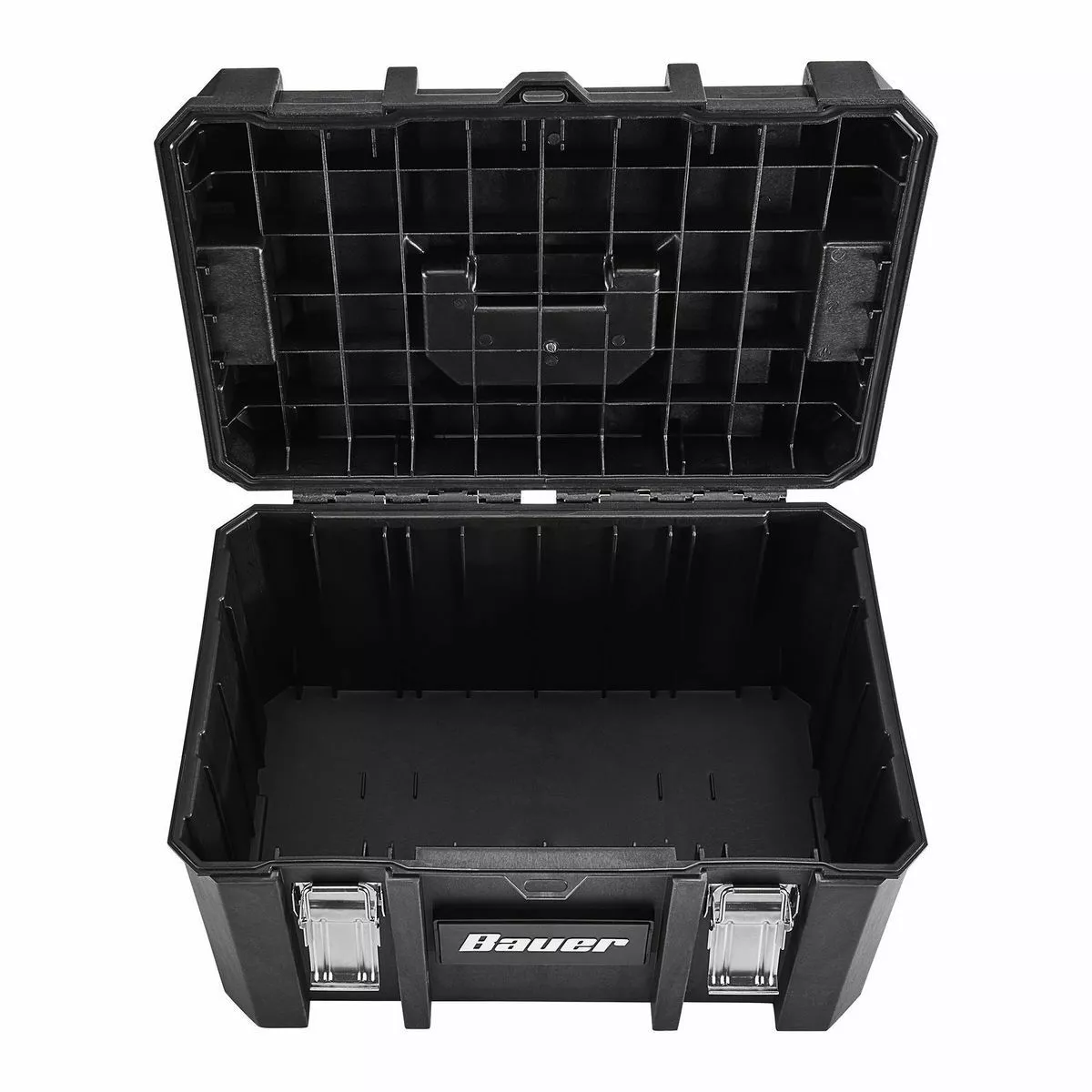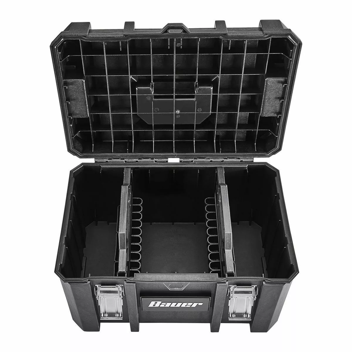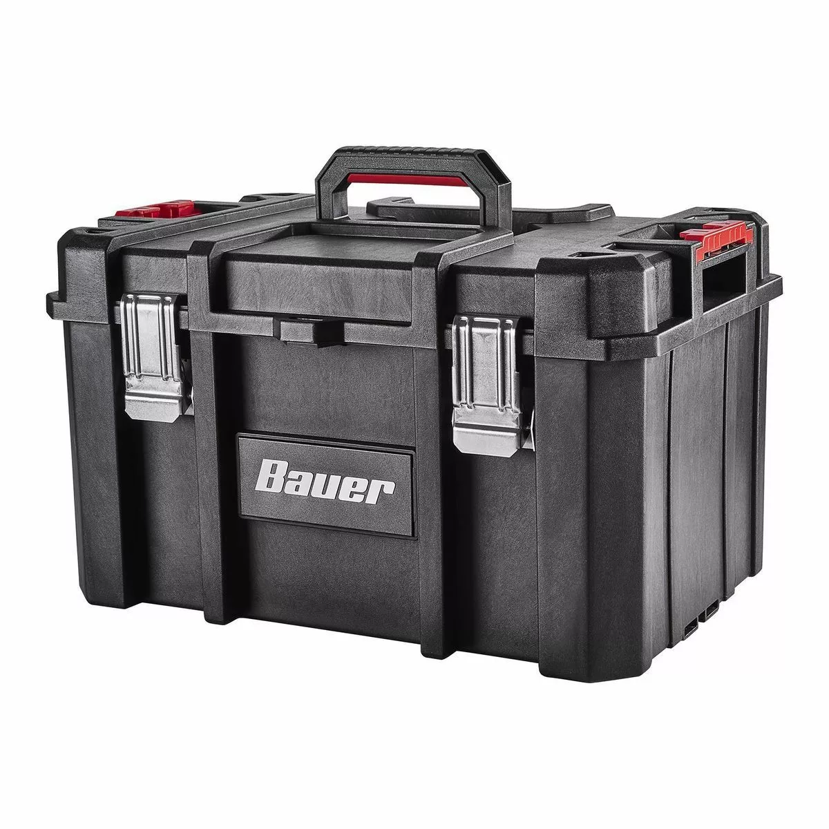 The BAUER™ Large Modular Toolbox is ideal for organizing tools. Made from high-impact resin, this toolbox has removable tool cards for organizing pliers, screwdrivers, and more. Strong metal latches keep tools secure during transport. With a 50 lb. weight capacity this toolbox is fully compatible the BAUER™ Modular Storage System. The organizer is IP65 rated for dust and water resistance. Customize your storage for quick access to essential tools.