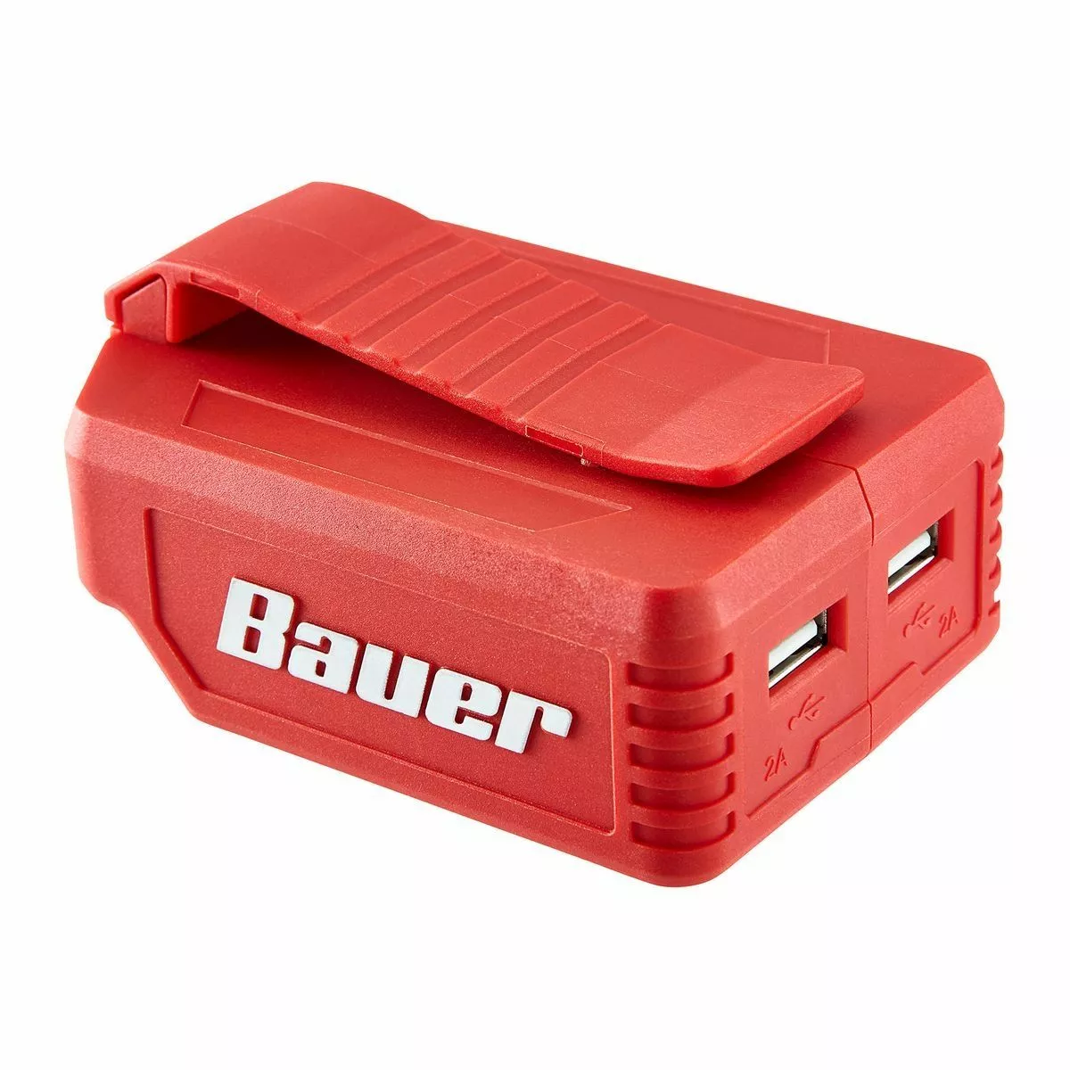 Simultaneously charge two USB devices using any BAUER™ 20V battery when AC power is not available. This easy-to-use adapter transforms a BAUER™ 20V battery into an ultra-high capacity power pack to recharge electronic devices. The belt clip and lanyard make it easy to transport.